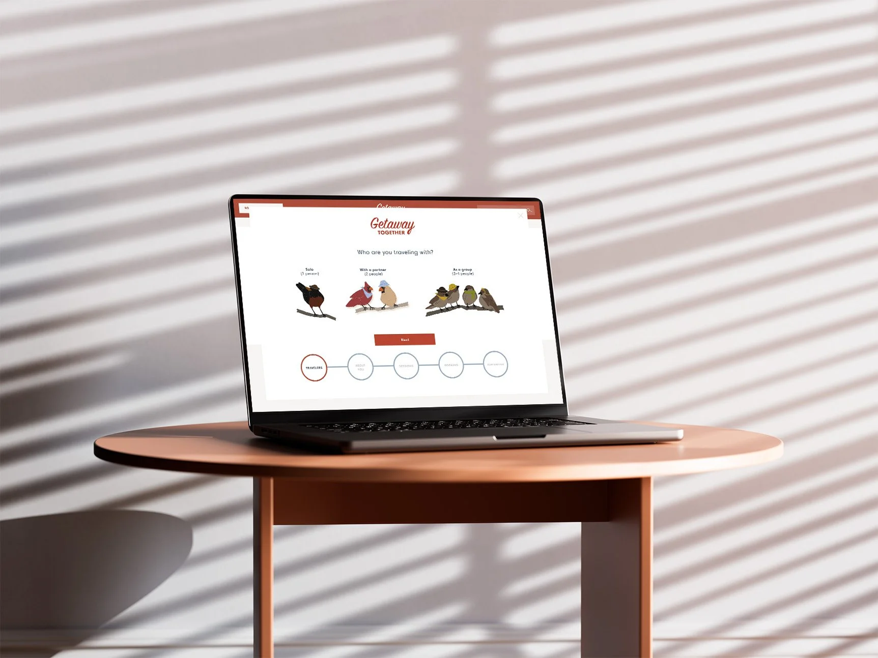 We designed a desktop experience that allow users to take an onboarding quiz that customizes their Getaway Together activities. The dashboard allows users to track achievements and connect with friends on the platform to plan future trips together.
