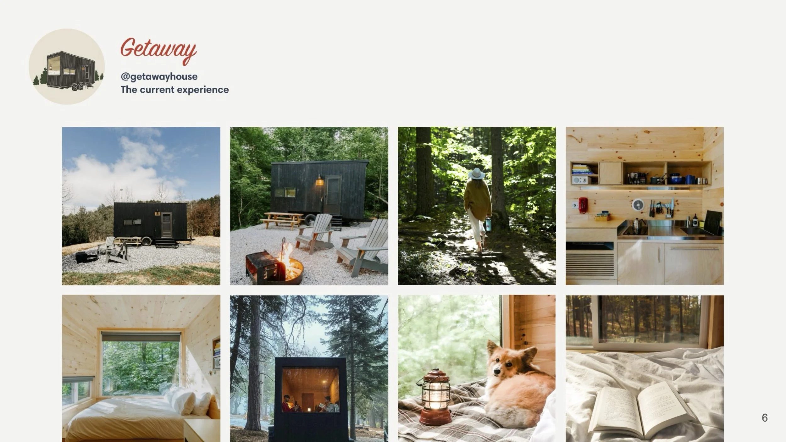We started our research by conducting interviews with 3 individuals who had previously planned a trip with Getaway. After speaking with these individuals, we categorized their goals, motivations, and pain points when staying with Getaway and solidified our understanding of the company’s current value propositions and challenges. Ultimately, Getaway aims to provide a restorative stay in nature to disconnect from the world and reconnect with your loved ones. However, current customers felt there was a lack of human services and a need for more communication throughout the stay, and would appreciate a greater curation of activities.