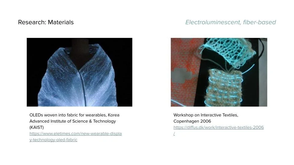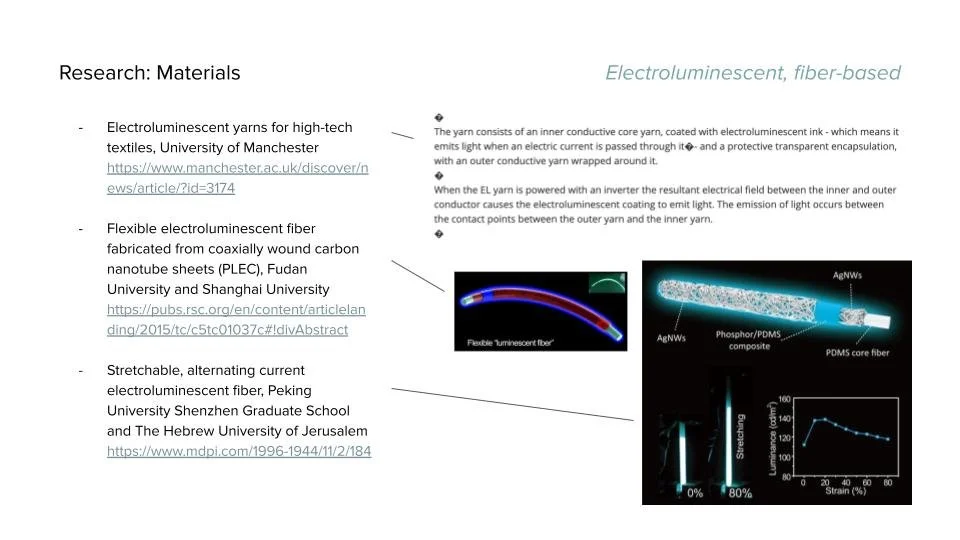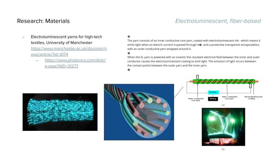Ultimately, the low-energy demand and precedence of wearable applications of electroluminescent materials (luminescence in response to electricity) narrowed down the research to fiber-based electroluminescents.