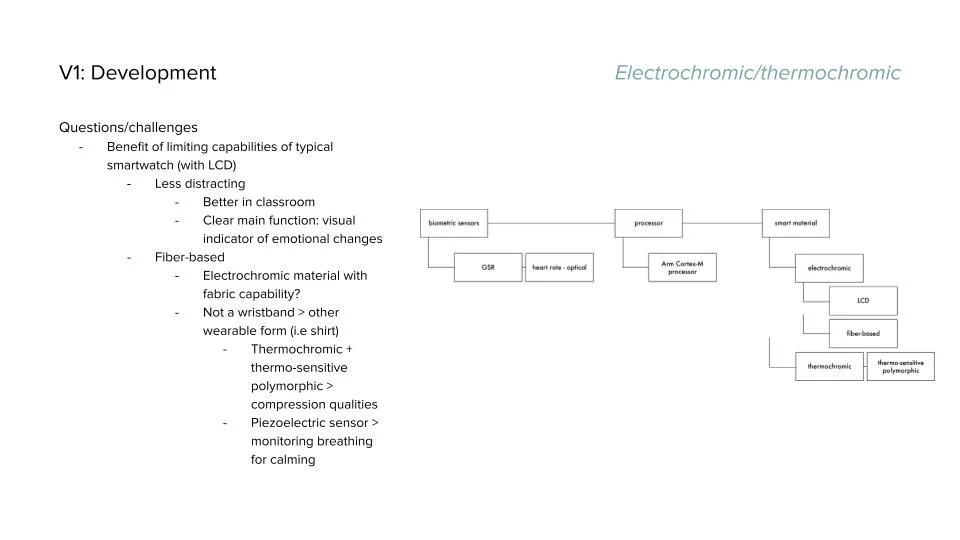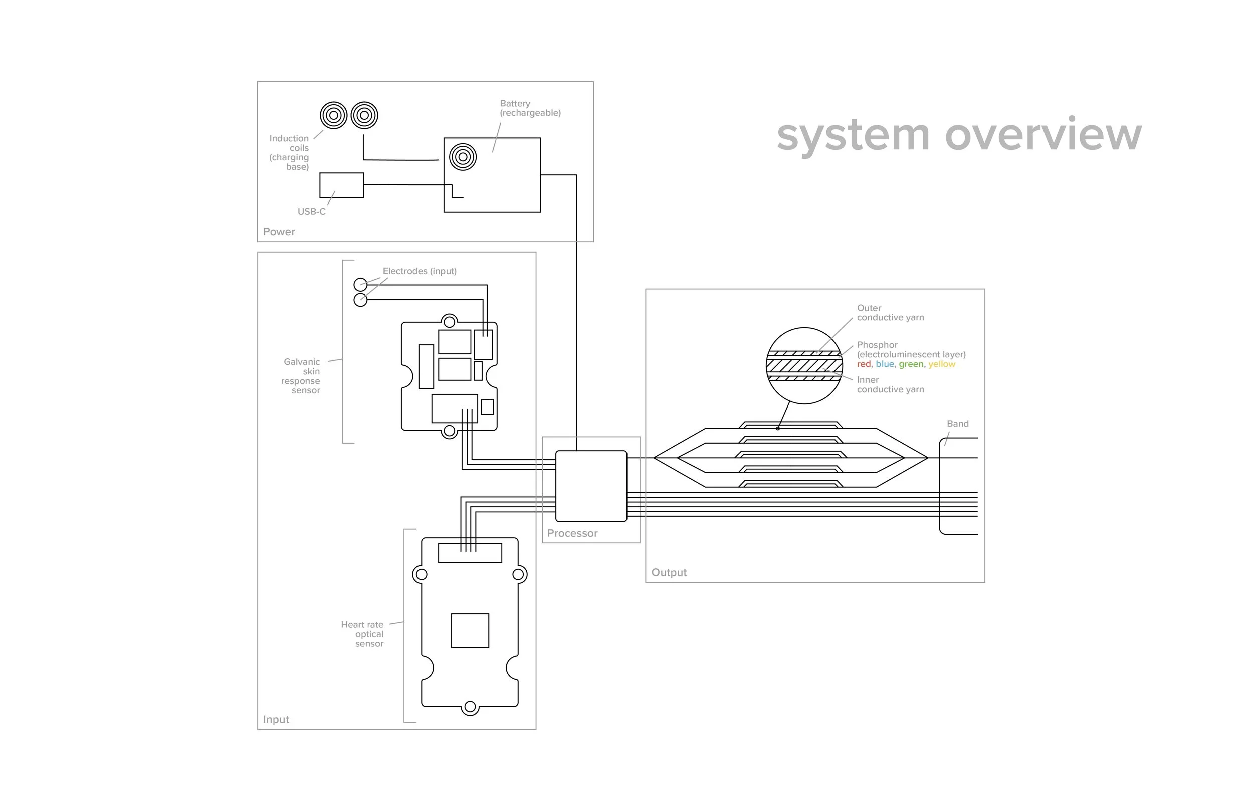 After refining the design of the overall system, I decided on the form of a wristband based on precedence of smartwatches as a familiar, relatively low-profile wearable that integrates biometric sensors.