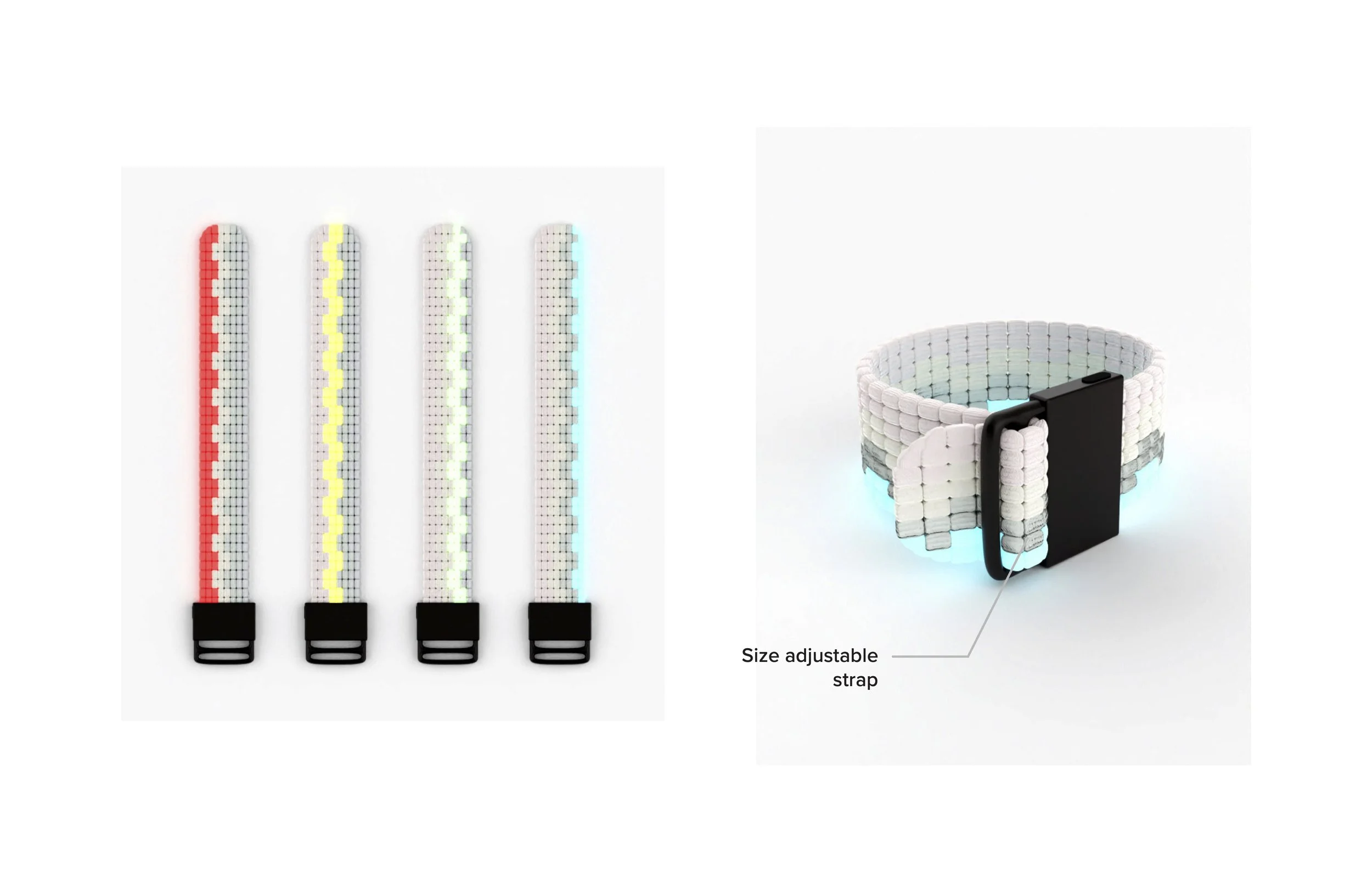 Since the key user of the wristband were young children, I explored potential designs that leaned into the low-tech appearance of the smart material, including friendship bracelets.